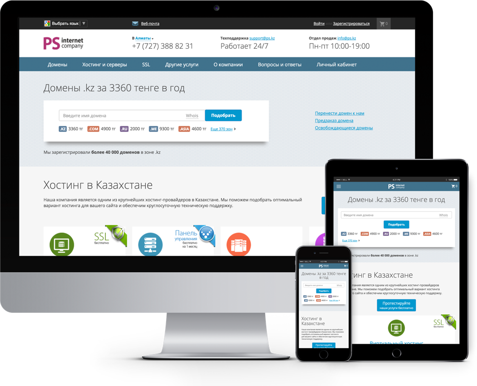 Интернет компания PS предоставляет удобную систему регистрации доменов более чем в 380 зонах, надежный хостинг и обеспечивает круглосуточную техподдержку.